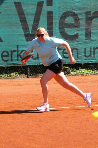 Nach den Einzeln stand es sehr ausgeglichen 3:3. Dany Thyßen nervenstark im CT B (6:4, 2:6, 10:8), Claudia Hansen (6:0, 6:2) und Sabrina Nabers (6:1, 6:0) souverän und klar in 2 Sätzen holten die Einzelpunkte. Anne Jansen von Wadenkrämpfen geplagt, musste ihr enges Spiel leider der Gegnerin überlassen. Auch Martina Kömpgen und Steffi von der Forst mussten ihren Gegnern nach umkämpften 2 Sätzen gratulieren. Die Doppelaufstellung hätte besser nicht sein können und um ein Haar wären alle drei Doppel an uns gegangen. Leider verlor Doppel 1 mit 6:10 Punkten im CT B (Dany Thyßen /Claudia Hansen). Doppel 2 mit Babsi Drießen/ Martina Kämpgen und Doppel drei mit Steffi von der Forst/ Sabrina Nabers siegten in zwei Sätzen. Ein rundum gelungener Tennistag mit glücklichen Waldnielerinnen über den Sieg.